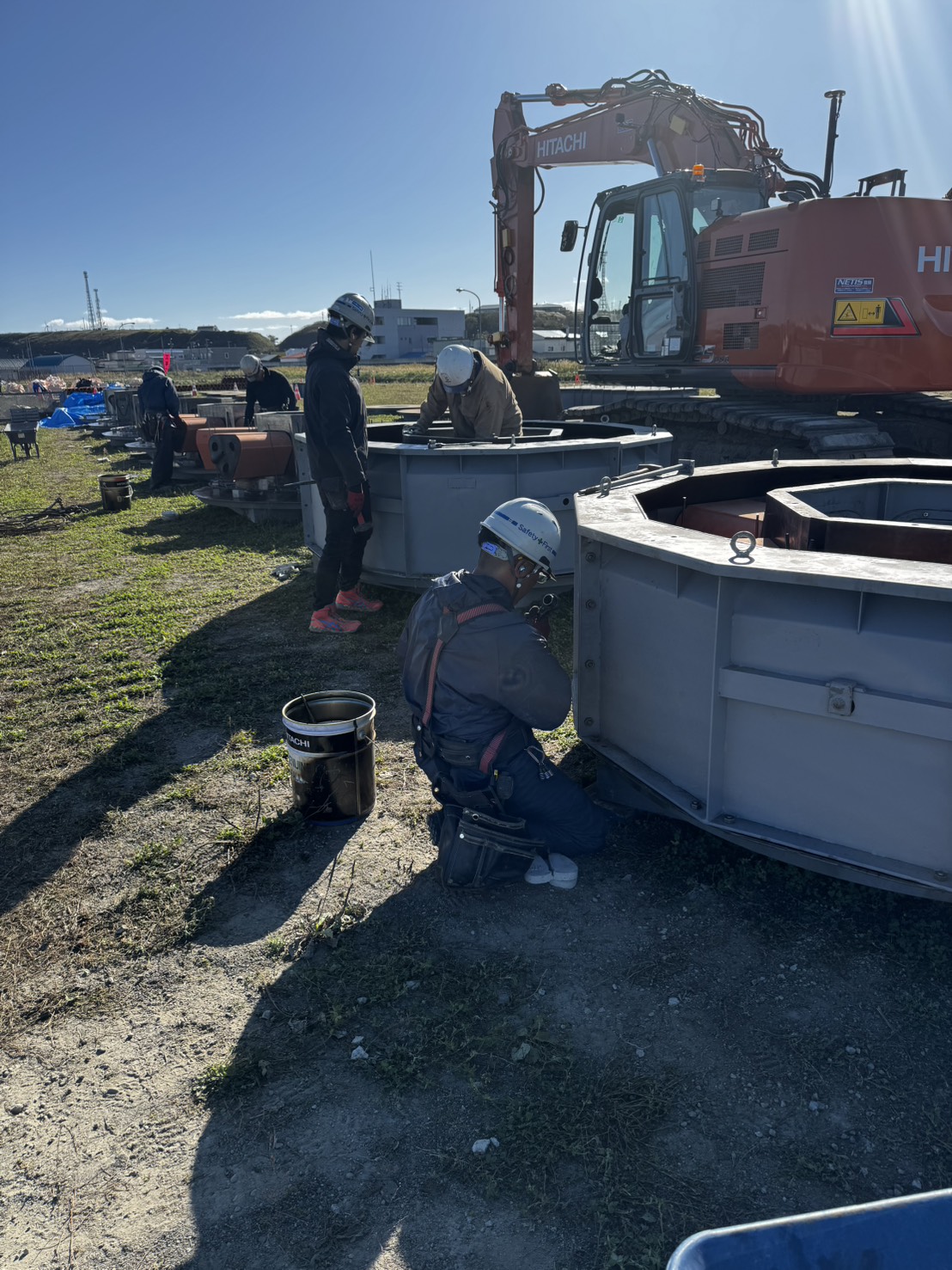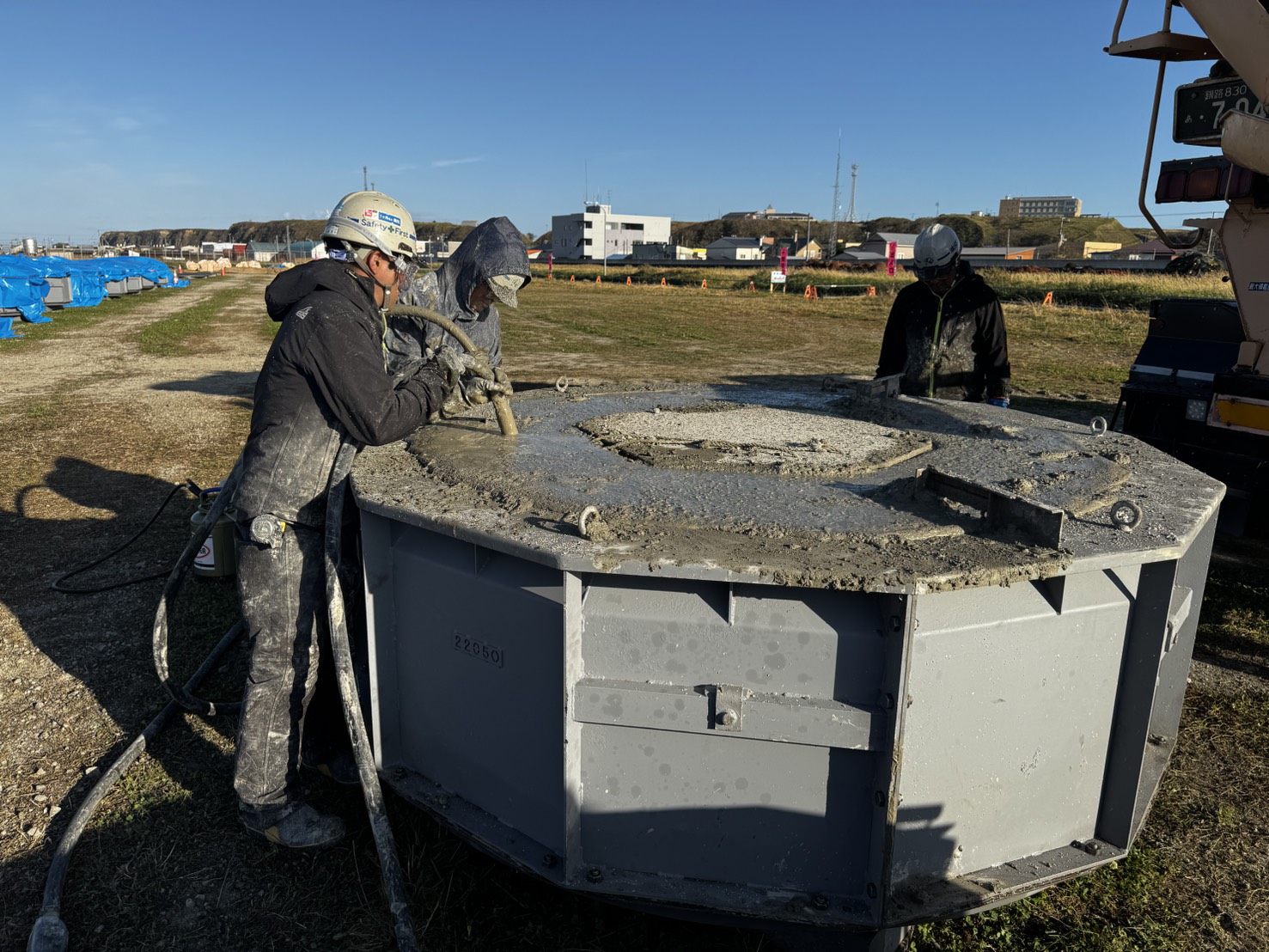 日々の天候や気温変化にも注意を払いながら、一基一基を確実に、丁寧に積み上げていく姿勢が求められた現場です。