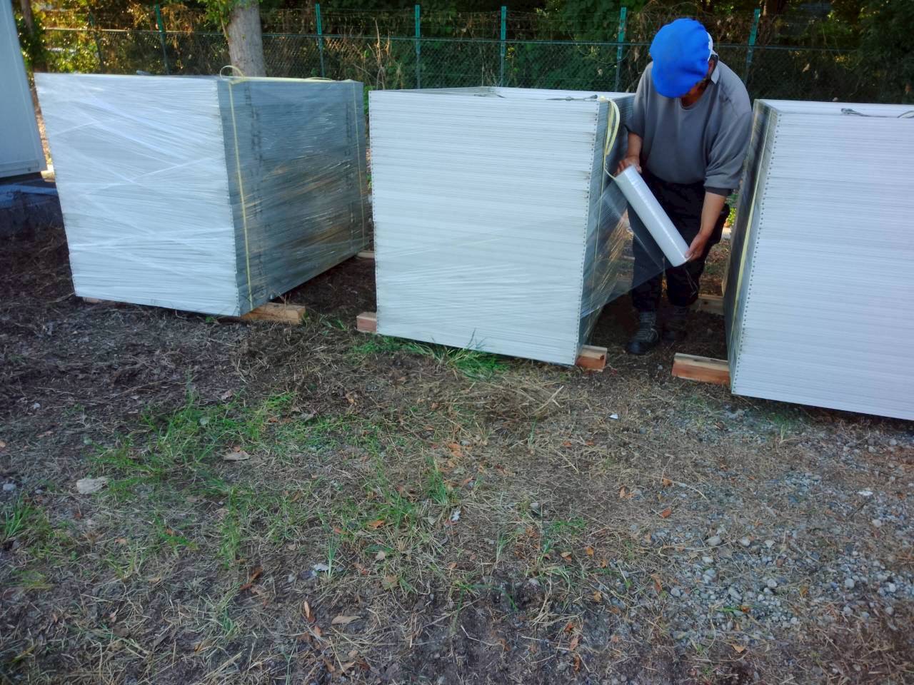 交換用のパネルは梱包を解きながら慎重に運び出し、